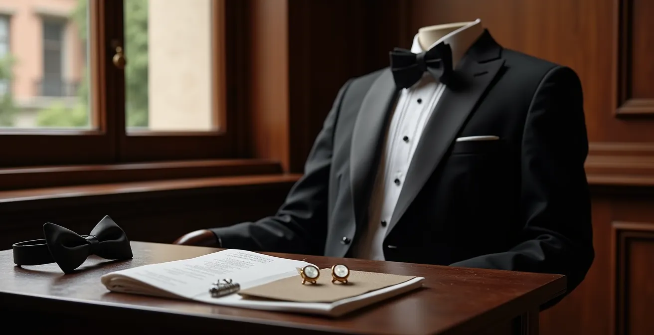 Este artículo se aleja de los consejos superficiales para adentrarse en la estrategia detrás de la etiqueta. La clave no es memorizar una lista de prendas, sino decodificar el sistema de jerarquías y respeto que el esmoquin representa en España. No se trata de moda; se trata de protocolo, poder y percepción. Dominar este código no le hará simplemente parecer elegante, le permitirá moverse con la confianza de quien pertenece al círculo y conoce sus reglas no escritas.