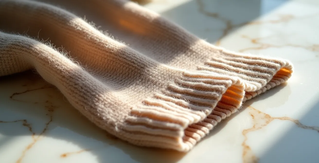 La etiqueta de composición es tu primer campo de batalla contra el marketing engañoso. Sin embargo, un simple «100% Seda» o «Mezcla de Cachemira» puede ocultar una realidad muy distinta. Aprender a descifrar las fibras y a reconocer sus imitaciones es una habilidad esencial para cualquier consumidor que valore su dinero. Las fibras sintéticas como el poliéster, la viscosa o el acrílico son maestras del disfraz.